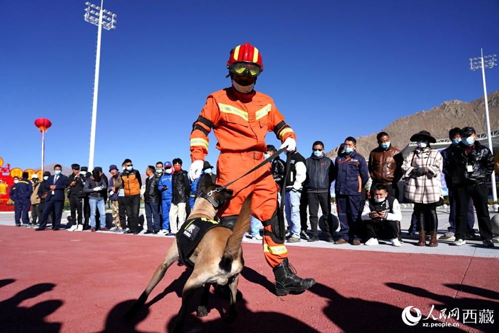 搜救犬現(xiàn)場演練。人民網(wǎng) 次仁羅布攝