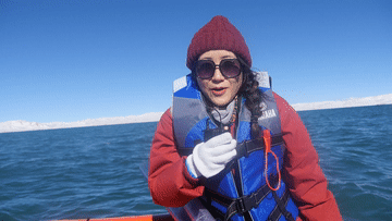 大家好,我是新華社記者董琳娜,我現(xiàn)在是在青藏高原格拉丹東的雀莫錯上。這里的海拔是5000米左右,現(xiàn)在戶外的溫度是零下10攝氏度左右??蒲腥藛T是要采雀莫錯的水樣。我們在12點之前要把水樣采完,否則風浪會非常大,給我們的工作帶來非常大的困難。