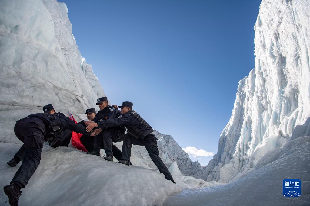普瑪江塘邊境派出所的移民管理警察在崗布冰川附近巡邏(11月20日攝)。新華社記者 孫非 攝