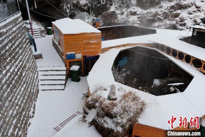 冬日,德仲溫泉周邊被積雪覆蓋。25日深夜,記者體驗(yàn)時,溫泉池內(nèi)水霧繚繞,抬頭便可以看到夜空中星星閃爍,十分奇妙。