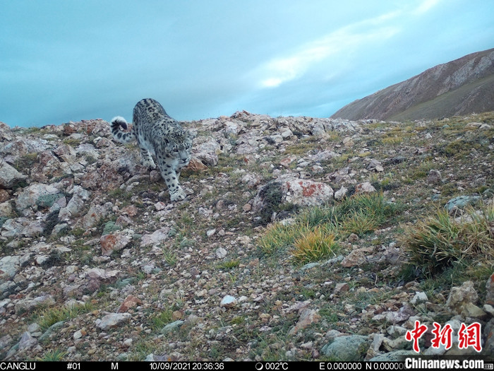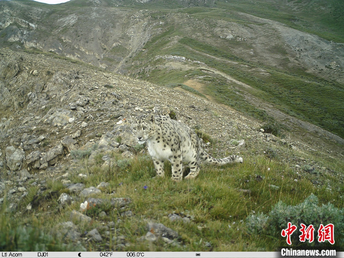 資料圖為2021年8月24日,西藏自治區(qū)那曲市境內(nèi),由紅外相機拍攝到的雪豹活動影像。 中新社發(fā) 山水自然保護中心 供圖
