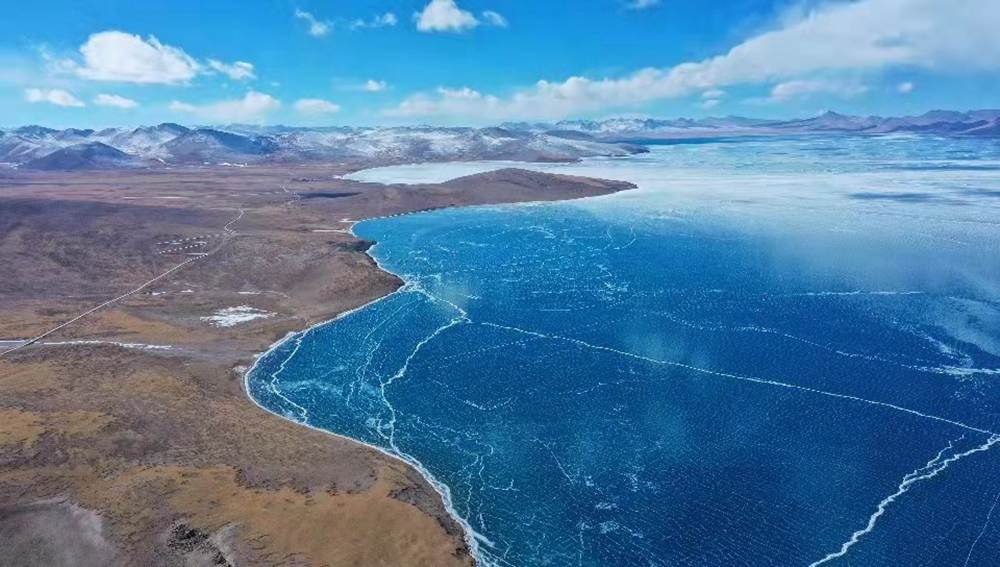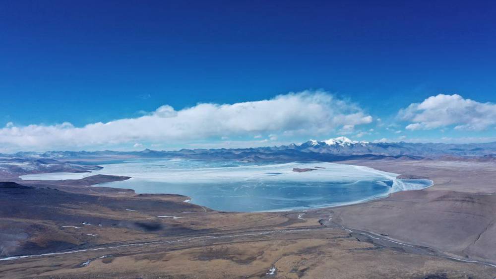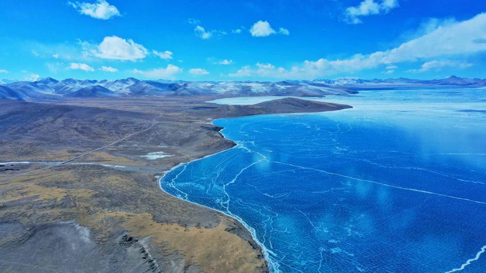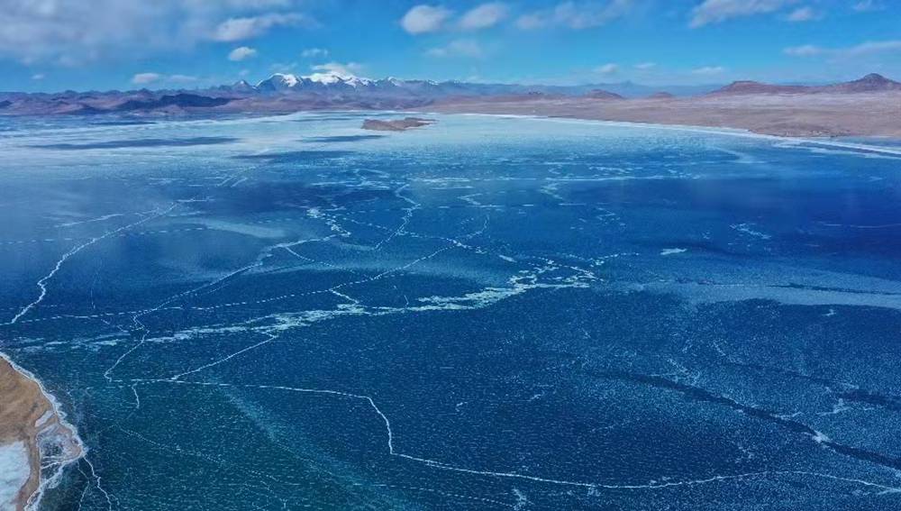 位于西藏山南市洛扎縣和浪卡子縣交界處的普莫雍錯(cuò),是喜馬拉雅山脈間的一個(gè)咸水湖,湖面海拔5070m。冬季的普莫雍錯(cuò)湖面會(huì)結(jié)冰,冰面通透可見(jiàn)湖底,在陽(yáng)光的照射下,呈現(xiàn)出動(dòng)人心魄的藍(lán)。