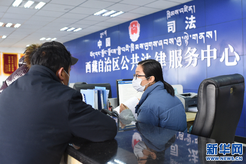 1月24日,在西藏自治區(qū)公共法律服務中心,律師為群眾講解法律咨詢。新華網(wǎng) 旦增努布 攝