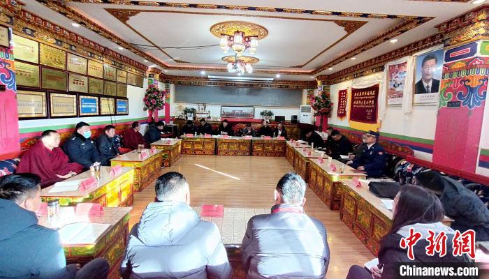 嘎瑪澤登與寺廟僧人、駐寺干部等座談。 貢桑拉姆 攝
