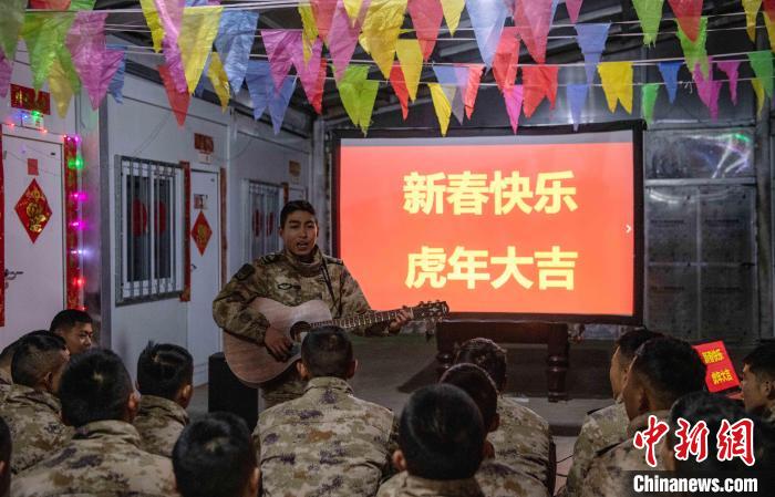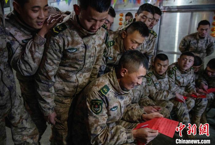 聯(lián)歡的尾聲指導(dǎo)員夏邦國拿著最后的彩袋走到臺前,把晚會推向高潮,“兄弟們,這還有一大袋紅包,里面裝著的可是最珍貴的祝福”。官兵們用抽盲盒的形式拆開新年的“紅包”。中士趙路寬抽到一個最鼓的,打開是滿滿的糖果;下士吳兵拆開的是一個帶有小機(jī)關(guān)的新年賀卡;下士鄧云川拆到一封遠(yuǎn)方的匿名信,“雖不曾相見與相識,但知道是你們在默默堅守付出,守衛(wèi)著祖國的雪域邊防”。伴隨著他磕絆的普通話,連隊官兵漸漸安靜下來?!斑呹P(guān)有我,請祖國和人民放心”,簡易投影的大屏上開始播放著官兵們一年多來頂風(fēng)冒雪,戰(zhàn)天斗地的光影片段,在這大山里的多少的苦累酸甜,都已經(jīng)鐫刻在茫茫雪域。