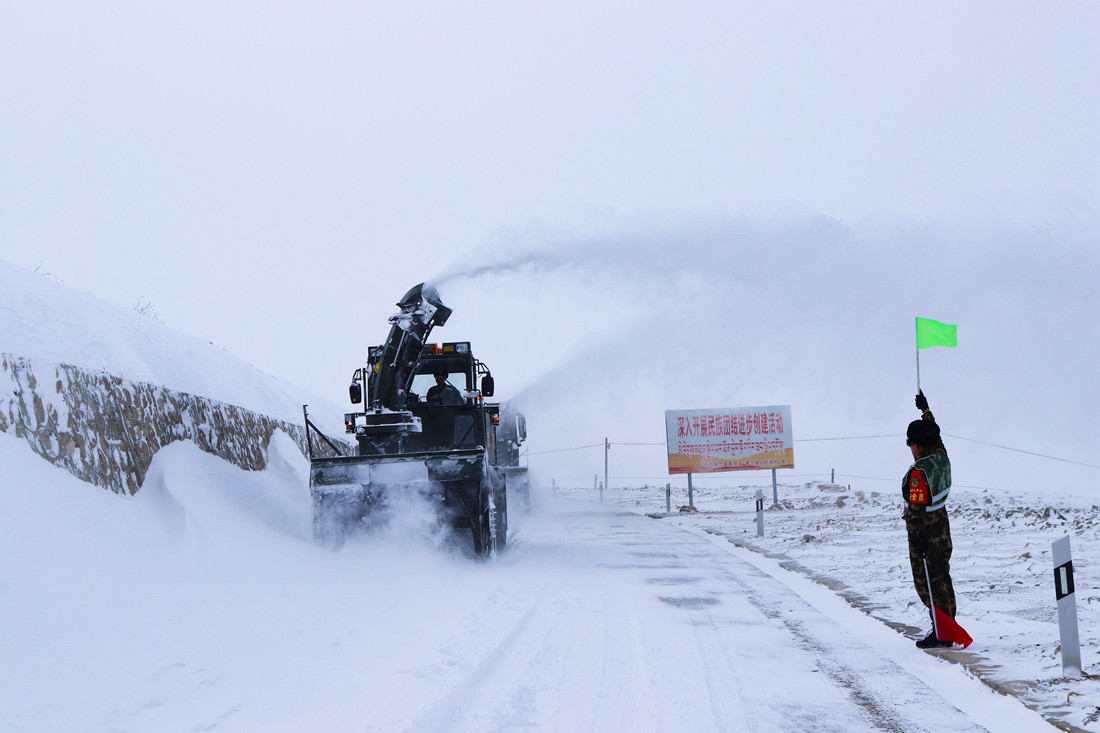 因?yàn)?zāi)害現(xiàn)場地處平均海拔4000多米以上海拔,持續(xù)降雪不斷,加之氣溫低至零下20多攝氏度,給整個(gè)道路搶通工作帶來了不少難度。為盡快清理路面積雪搶通道路,武警官兵采取“人歇機(jī)不停、分段搶通、先通后拓”的方法進(jìn)行全力搶通,克服了高寒缺氧及紫外線強(qiáng)烈等重重困難。