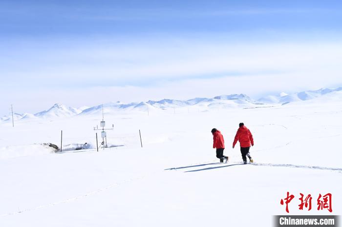緩慢行駛過(guò)雪路,抵達(dá)納木錯(cuò)鄉(xiāng),中新社記者與中科院納木錯(cuò)多圈層綜合觀測(cè)研究站(西藏納木錯(cuò)高寒湖泊與環(huán)境國(guó)家野外科學(xué)觀測(cè)研究站,簡(jiǎn)稱(chēng)納木錯(cuò)站)的兩位觀測(cè)員匯合。