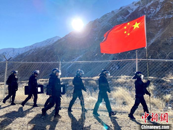 圖為普蘭邊檢站民警在邊境一線巡邏?!「駸?攝