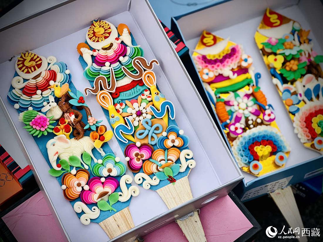 “卡塞”是藏歷新年的傳統(tǒng)食物,用酥油炸制而成,然后再裹上白砂糖并上色。人民網(wǎng) 次仁羅布攝