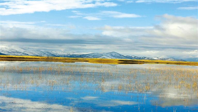 西藏自治區(qū)日喀則市仲巴縣帕羊濕地地處雅魯藏布江上游,該地地理景觀獨特,是集雪山、沙丘湖泊和草地為一體的綜合性自然保護區(qū),與湛藍的天空和變幻不定的白云匯集在一起,構(gòu)成了一幅唯美的生態(tài)畫卷。