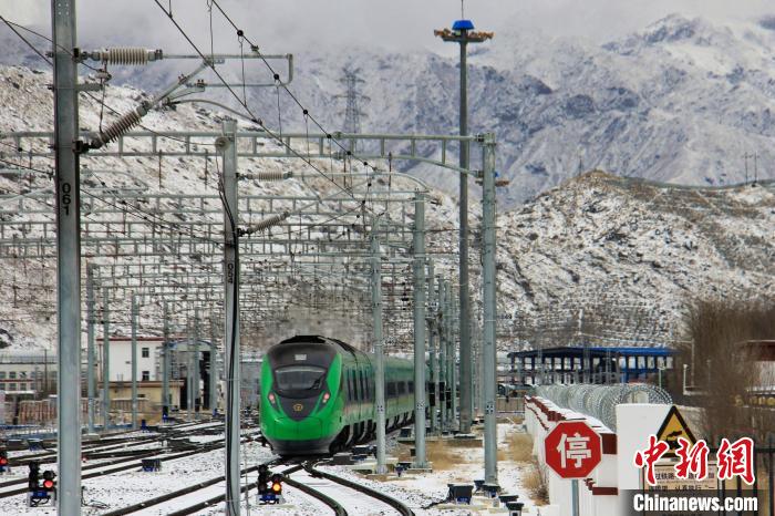 圖為日喀則方向動(dòng)車(chē)組進(jìn)入拉薩車(chē)站?!±詈P?攝