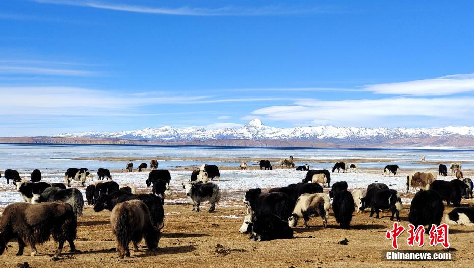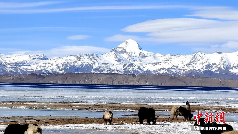 每年入冬后,西藏阿里地區(qū)普蘭縣農(nóng)牧區(qū)牦牛出現(xiàn)在岡仁波齊神山腳下及瑪旁雍錯圣湖旁,呈現(xiàn)“天邊牧場”的最美盛景。這里正是西藏瑪旁雍錯濕地國家級自然保護(hù)區(qū),視野開闊,水草豐美?,斉杂哄e的湖水主要來自岡底斯山脈的雪山融水,幽美而清澈。當(dāng)?shù)啬撩窠崭嬖V記者,每年冬季,周邊的農(nóng)牧區(qū)將把牦牛趕到這里過冬,在冬季這里的牦牛只喝“圣水”,“都是有口福的牛。” 貢桑拉姆 攝