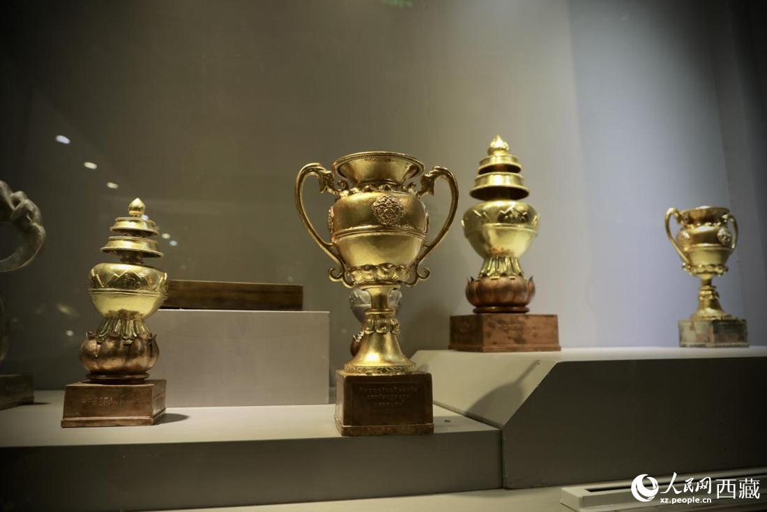 白納鍛銅工藝品——?dú)v屆跨喜馬拉雅自行車極限賽獎杯。人民網(wǎng) 次仁羅布攝