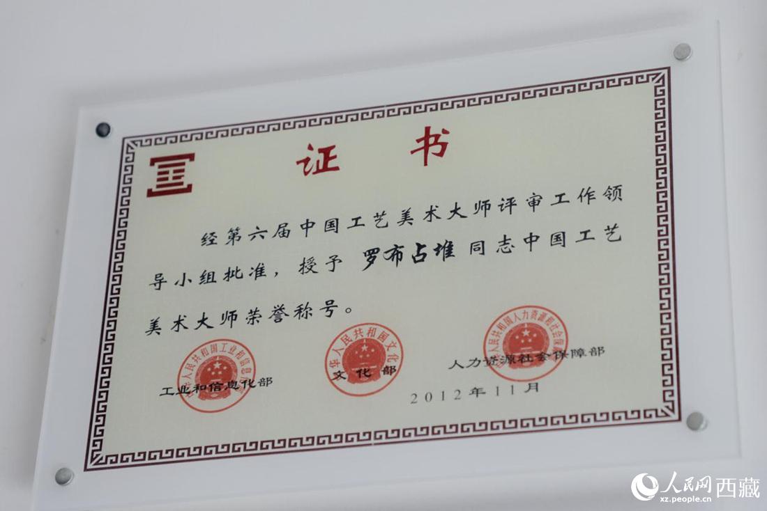 2012年傳承人羅布占堆獲中國工藝美術(shù)大師稱號。人民網(wǎng) 次仁羅布攝