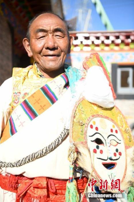 圖為3月21日,協(xié)榮“仲孜”國(guó)家級(jí)非物質(zhì)文化遺產(chǎn)傳承人桑珠。 中新社記者 貢嘎來松 攝