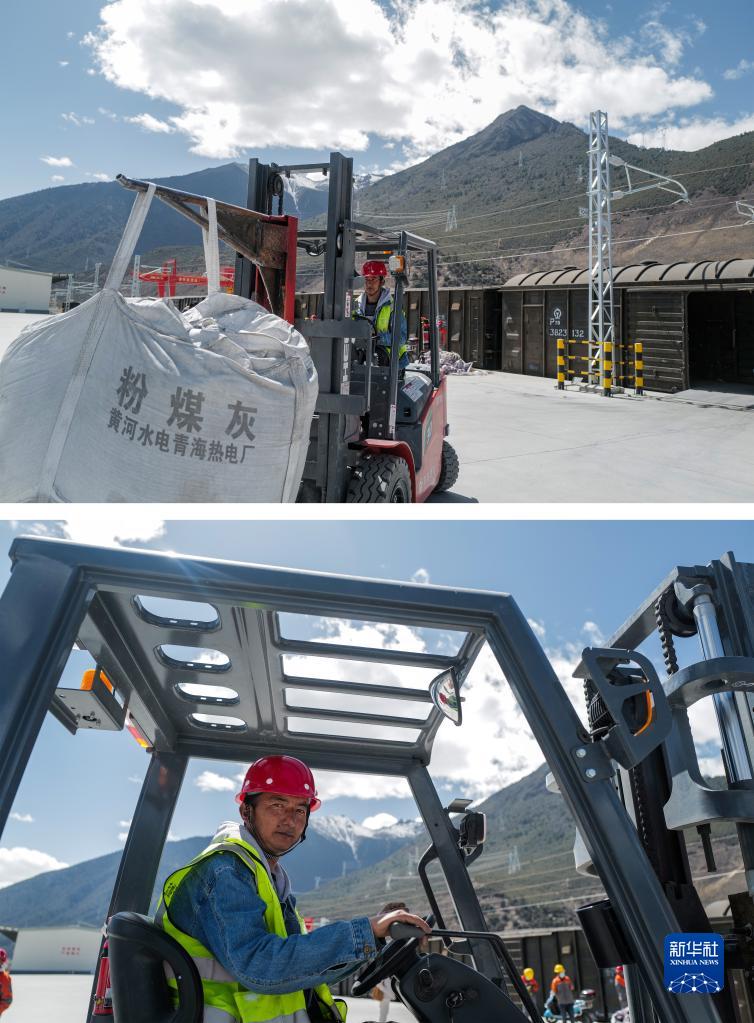 拼版照片:上圖為3月29日,邊巴在林芝站貨場(chǎng)搬運(yùn)貨物;下圖為邊巴在駕駛叉車。朵當(dāng)村的村民邊巴跟人合伙開了一家物流公司,將抵達(dá)火車站的飼料、日用百貨、建筑材料等運(yùn)往林芝各地,他每天都會(huì)通過微信召集周邊的年輕人來(lái)貨場(chǎng)干活。邊巴說,他對(duì)未來(lái)充滿希望,拉林鐵路貨運(yùn)量不斷增加,自己和村民的收入會(huì)越來(lái)越好。新華社記者 洛卓嘉措 攝