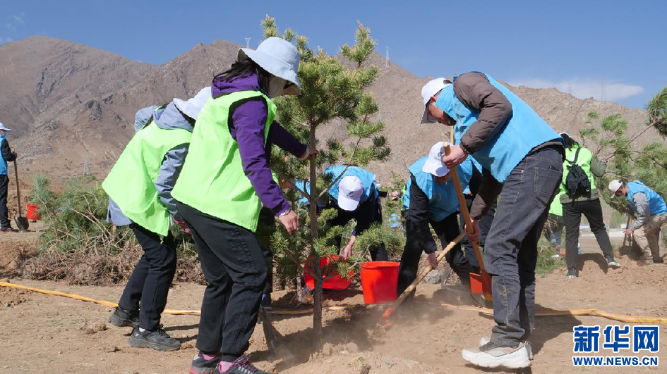圖為植樹活動(dòng)現(xiàn)場(4月16日攝)。新華網(wǎng)發(fā) 貢桑央吉(實(shí)習(xí)生)攝
