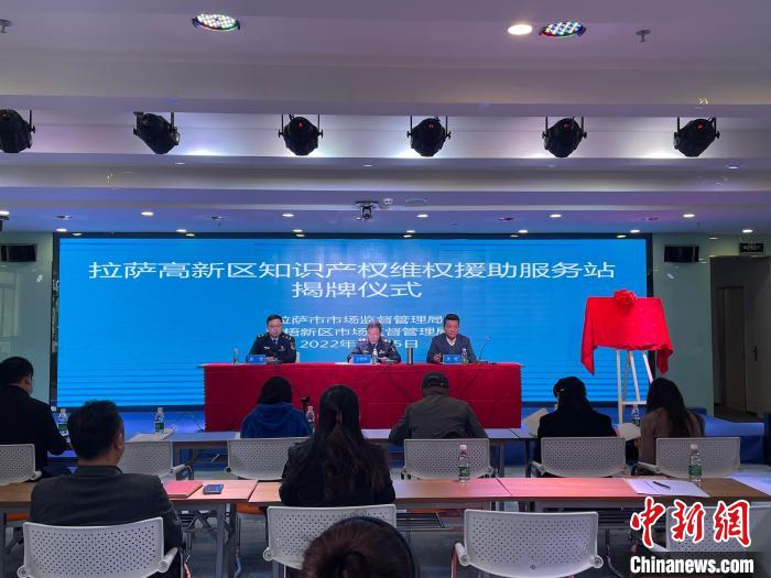 圖為拉薩市高新區(qū)知識(shí)產(chǎn)權(quán)維權(quán)援助服務(wù)站揭牌儀式現(xiàn)場(chǎng)。貢嘎來松 攝