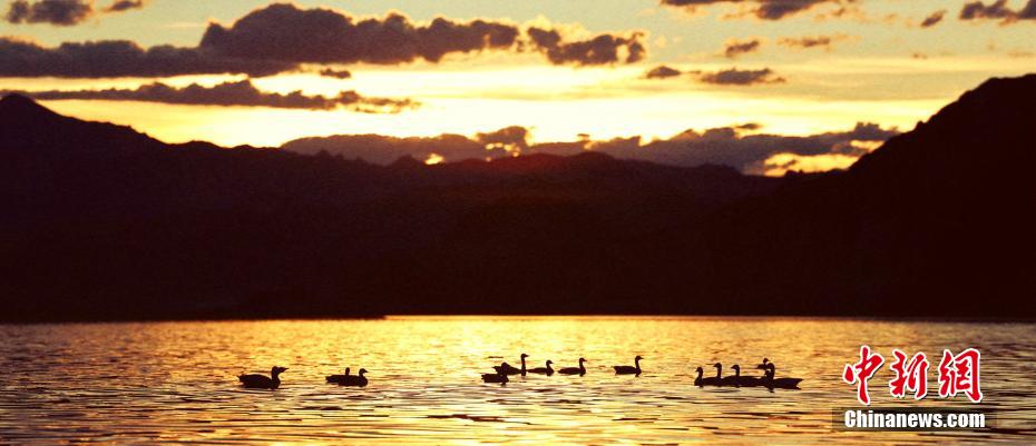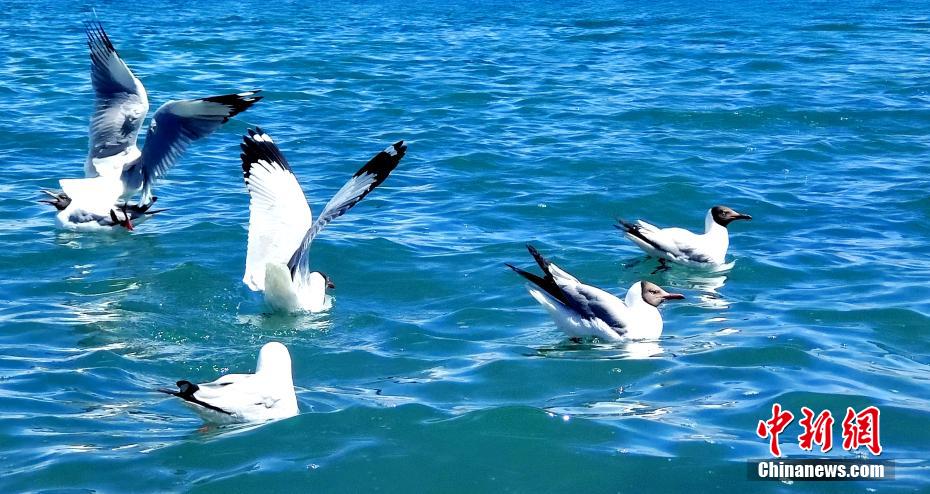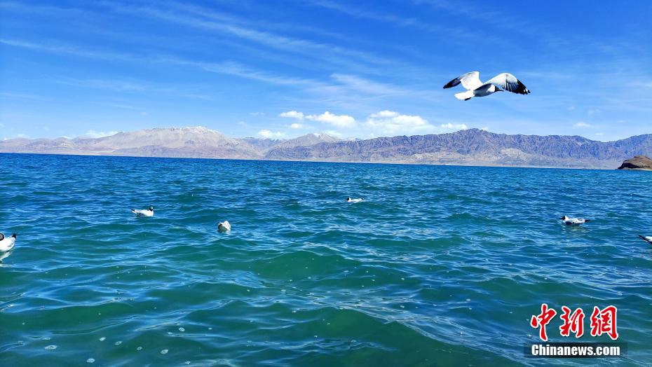 連日來,班公湖晴空萬里,在藍寶石般的湖面上,小白鳥自由游弋。貢桑拉姆 大象 嘎瑪次仁 攝