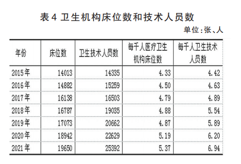 年末全區(qū)共有衛(wèi)生機構1650個。其中,醫(yī)院179個,鄉(xiāng)(鎮(zhèn))衛(wèi)生院675個,社區(qū)衛(wèi)生服務中心(站)14個,疾病預防控制中心82個,婦幼保健院(站)36個。醫(yī)療衛(wèi)生機構實有床位數19650張。其中醫(yī)院14808張。衛(wèi)生技術人員25392人。其中執(zhí)業(yè)(助理)醫(yī)師10448人。每千人醫(yī)療衛(wèi)生機構床位數5.37張。每千人衛(wèi)生技術人員數6.94人。每千人執(zhí)業(yè)(助理)醫(yī)師數2.85人。