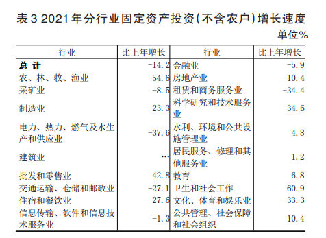 全年固定資產投資總額比上年下降14.2%。按產業(yè)分,第一產業(yè)投資增長56.3%,第二產業(yè)投資下降29.7%,第三產業(yè)投資下降13.1%。按經濟類型分,國有經濟投資下降12.5%,集體經濟投資增長21.0%,個體經濟投資下降78.2%,其他各種經濟類型投資增長53.6%。全年民間投資增長0.7%。