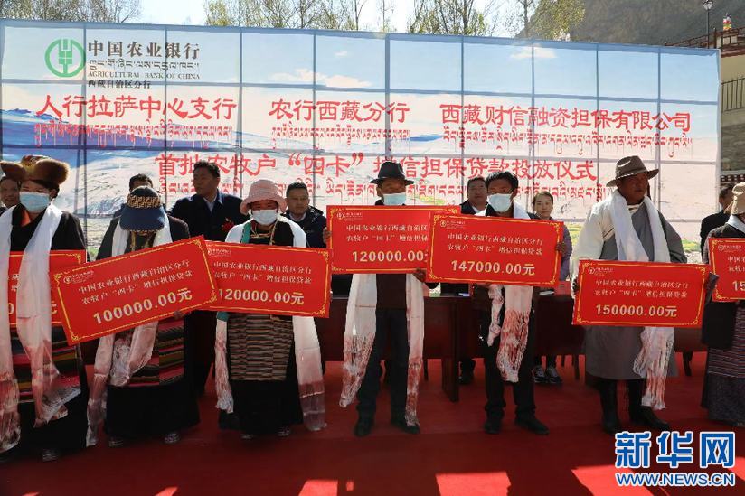 26日,由西藏財(cái)信融資擔(dān)保有限公司與農(nóng)行西藏分行聯(lián)合推出的農(nóng)牧戶“四卡”增信擔(dān)保貸款首批發(fā)放儀式,在山南市洛扎縣洛扎鎮(zhèn)舉行?,F(xiàn)場9名受益群眾代表獲“四卡”增信擔(dān)保貸款共計(jì)111萬元。