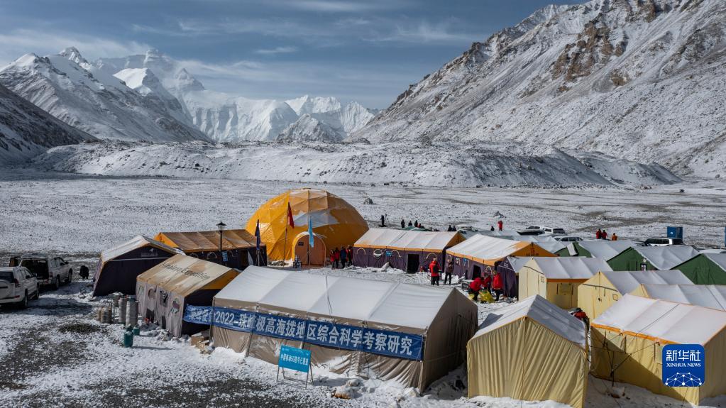 這是海拔5200米的珠峰登山大本營(5月1日攝,無人機照片)。新華社發(fā)