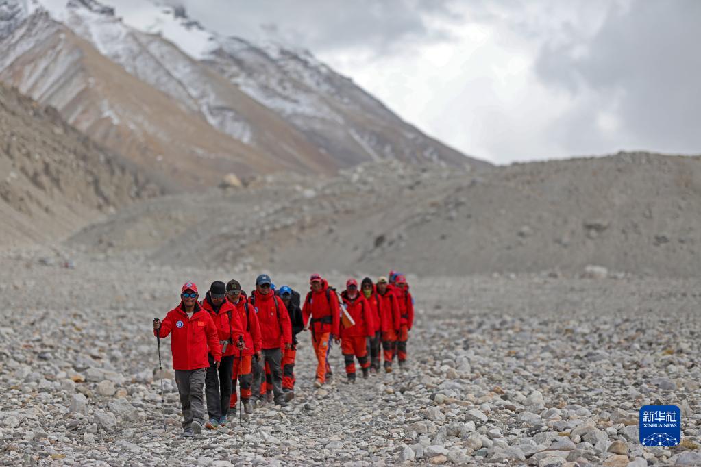 科考隊(duì)員正在返回大本營(yíng)(5月5日攝)。新華社記者 姜帆 攝
