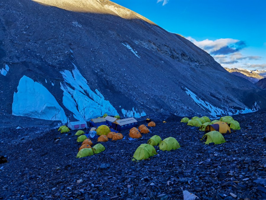 這是冰川與污染物小組位于海拔5800米的科考營地(5月6日攝,手機(jī)照片)。新華社發(fā)(受訪者供圖)