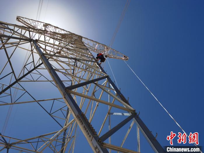 圖為國網(wǎng)青海超高壓公司輸電運(yùn)檢人員在海拔4700米以上的高原檢修“電力天路”。國網(wǎng)青海超高壓公司供圖