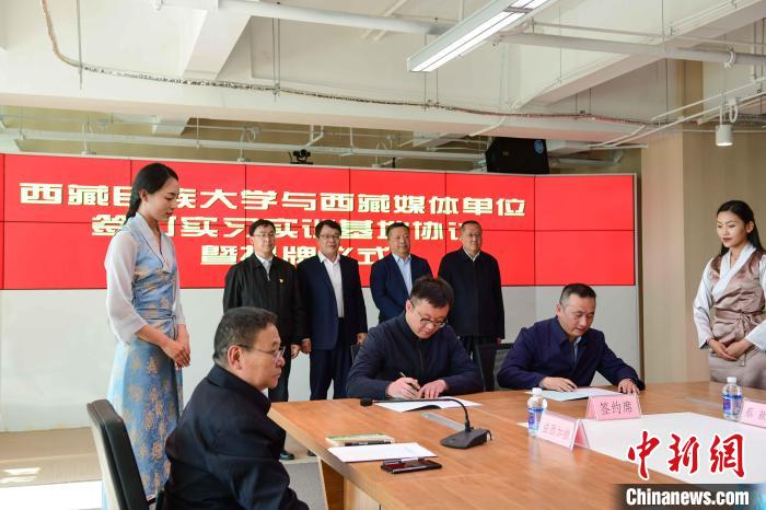 5月27日,西藏民族大學(xué)與西藏日?qǐng)?bào)社、西藏廣播電視臺(tái)、人民網(wǎng)西藏頻道、中國(guó)新聞社西藏分社、中國(guó)西藏網(wǎng)西藏記者站等媒體單位簽訂實(shí)習(xí)實(shí)訓(xùn)基地協(xié)議暨揭牌儀式在西藏日?qǐng)?bào)舉行。