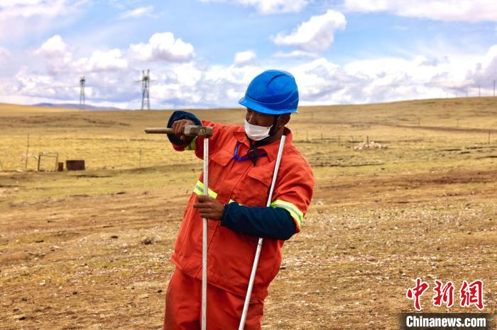 “這里是當年建設青藏聯(lián)網(wǎng)工程時的凍土施工攻堅帶,這樣的地方,也只有靠冬季受凍時施工。春夏時節(jié),便成了泥沼地?!?501號塔位年檢工作現(xiàn)場負責人董建明一邊推車,一邊介紹。