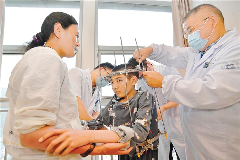 教育“走出去”取得成功的同時(shí),醫(yī)療幫扶也同樣創(chuàng)造了奇跡。2020年8月,經(jīng)援藏工作組對(duì)接協(xié)調(diào),蕭山區(qū)中醫(yī)院在色尼區(qū)啟動(dòng)“抬頭挺胸·重塑脊梁”圓夢(mèng)行動(dòng)。曾因脊柱嚴(yán)重畸形、身高僅有135厘米的藏族小伙尼瑪扎西來杭免費(fèi)治療半年后,奇跡般地長(zhǎng)高了22.3厘米。截至目前,已有25位像尼瑪扎西這樣的患者得到救治,挺起了人生的脊梁。