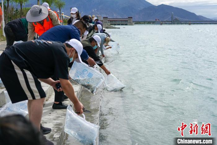 圖為7月12日,拉薩河畔放流活動(dòng)現(xiàn)場(chǎng)。 江飛波 攝