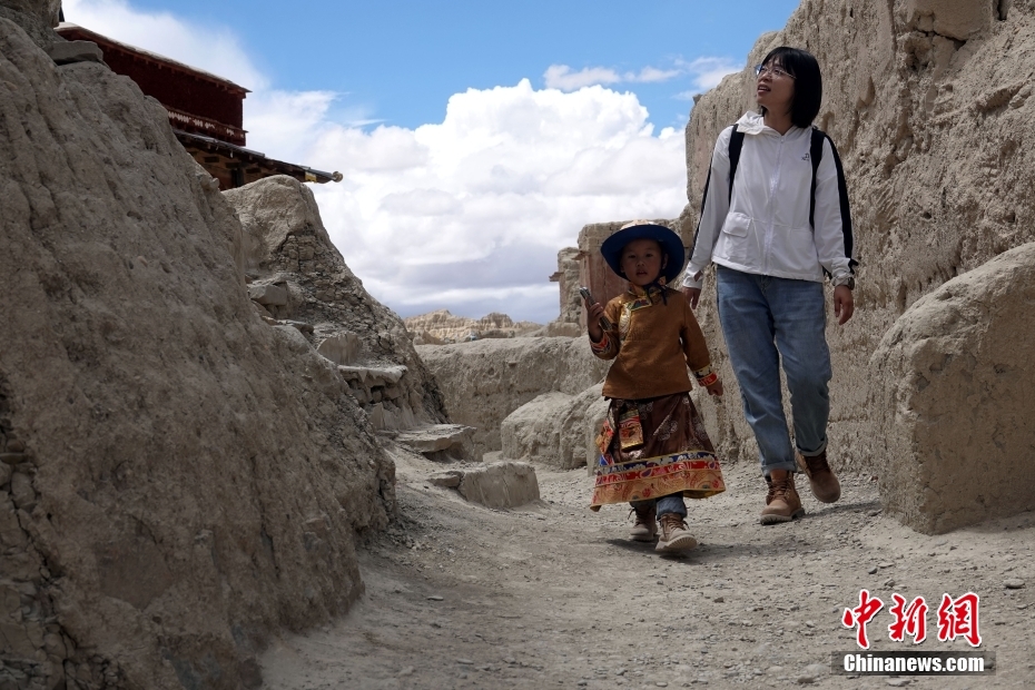 8月4日,西藏自治區(qū)阿里地區(qū)札達縣,執(zhí)行2022年夏季科考任務(wù)的中國第二次青藏高原綜合科學(xué)考察研究(青藏科考)“人類活動歷史及其影響”分隊,在古格王朝(966年-1630年)都城遺址實地考察調(diào)研。據(jù)了解,古格王朝都城遺址總面積達75萬平方米,海拔約3900米,現(xiàn)有窯洞、碉堡、白塔等各類建筑遺跡共1416處,整個建筑規(guī)模宏大,布局嚴謹,氣勢宏偉,1961年被列為國家級首批重點文物保護單位。圖為一對母子游客在遺址頂端參觀。 中新社記者 孫自法 攝