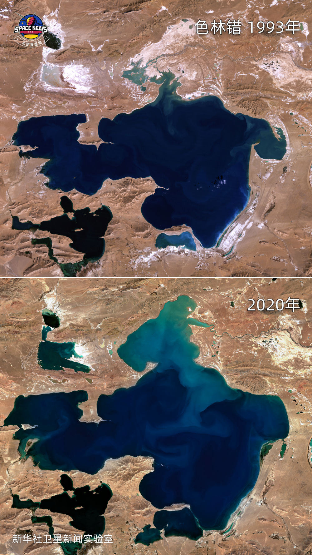 岡底斯山北麓的色林錯(cuò)湖是中國(guó)第三大咸水湖,近年由于冰川融水補(bǔ)給量增加,湖泊面積不斷擴(kuò)大,特別是湖區(qū)北部、東南部、南部區(qū)域。