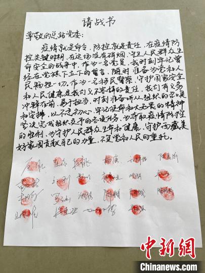 圖為執(zhí)法調(diào)查支隊(duì)民警寫下請(qǐng)戰(zhàn)書(shū),簽名并按手印。陸鑫 攝