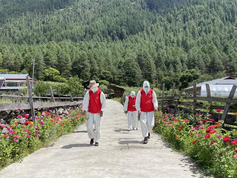 林芝市察隅縣布宗村新時(shí)代文明實(shí)踐站志愿者開(kāi)展消殺工作。圖片由察隅縣提供