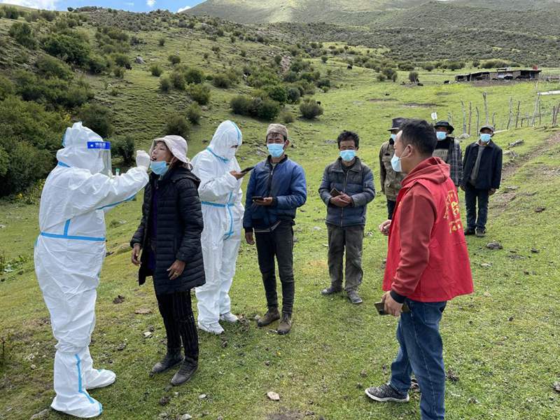 林芝市朗縣防疫人員到牧區(qū)進(jìn)行核酸采樣工作。圖片由林芝市文明辦提供