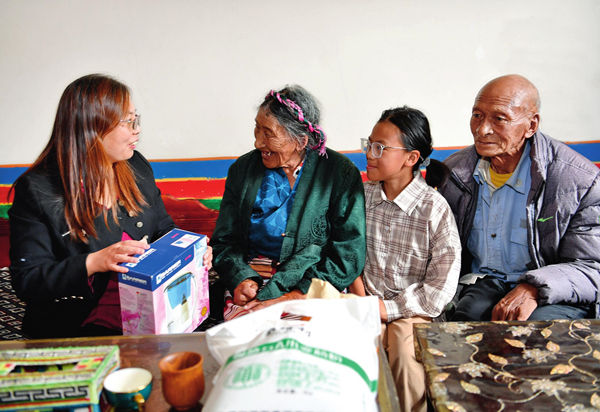 入戶走訪的過程中,王玉秀收獲了許多藏族老百姓的信任和喜愛。援藏結(jié)束前,她專門去看望在日喀則市謝通門縣初村結(jié)識的次仁和格桑桑珠,還為他們留下生活用品和現(xiàn)金。臨別時,次仁感動地說:“能有這么一位‘親戚’,我們真的很高興?!?/p>