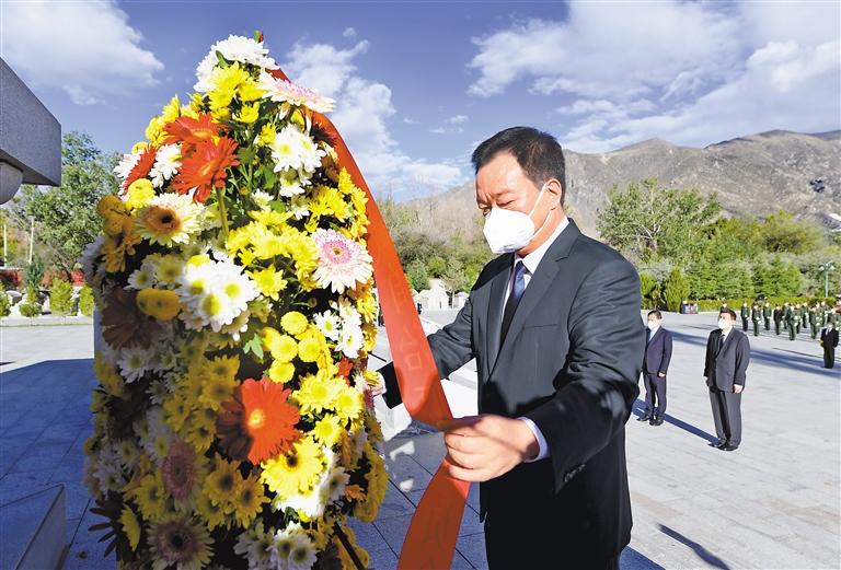 鮮花獻英烈,哀思祭忠魂。在第九個烈士紀念日來臨之際,9月30日上午,西藏自治區(qū)向烈士敬獻花籃儀式在拉薩烈士陵園舉行,自治區(qū)黨政軍領導同全區(qū)各族各界干部群眾代表一起向人民英雄敬獻花籃,緬懷烈士功績,弘揚革命精神,凝聚奮進力量。