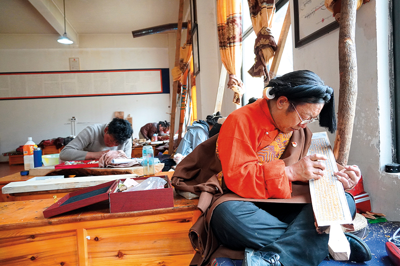 江達縣的波羅古澤木刻雕版技藝,2008年被列入第一批國家級非物質文化遺產(chǎn)擴展名錄。該技藝以當?shù)厥a(chǎn)的樺膠樹為原料,制作出的工藝品做工精細。一塊雕版制作完成需經(jīng)10多道工序,使用的刻板雕刻工具有40余種。