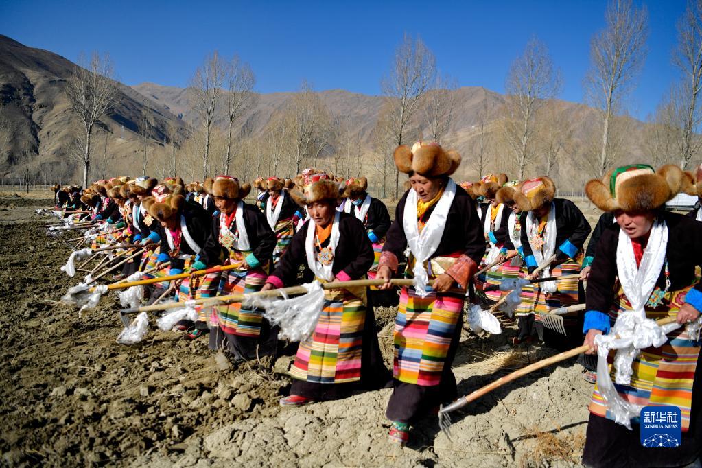 西藏山南市乃東區(qū)門(mén)中崗社區(qū)春耕儀式現(xiàn)場(chǎng)(2022年3月16日攝)。新華社記者 張汝鋒 攝