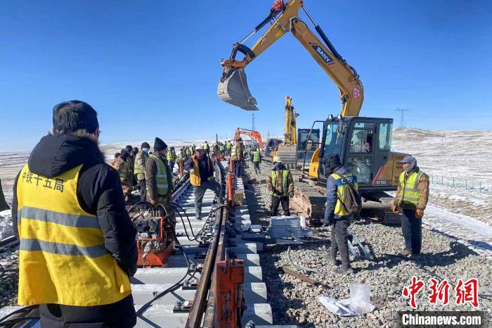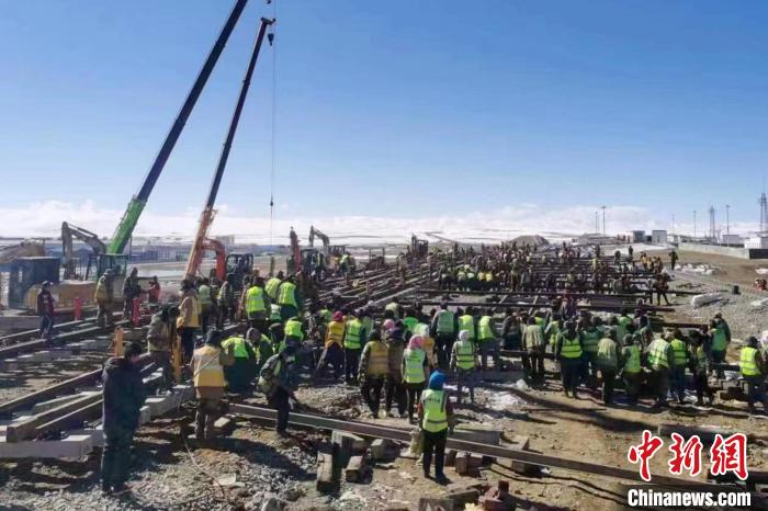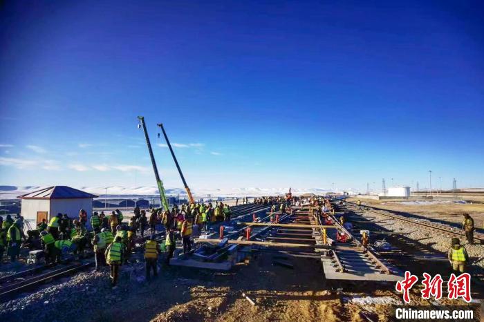 圖為海拔4500多米那曲車站道岔更換及信號(hào)系統(tǒng)改造施工現(xiàn)場?!F青藏集團(tuán)有限公司 供圖