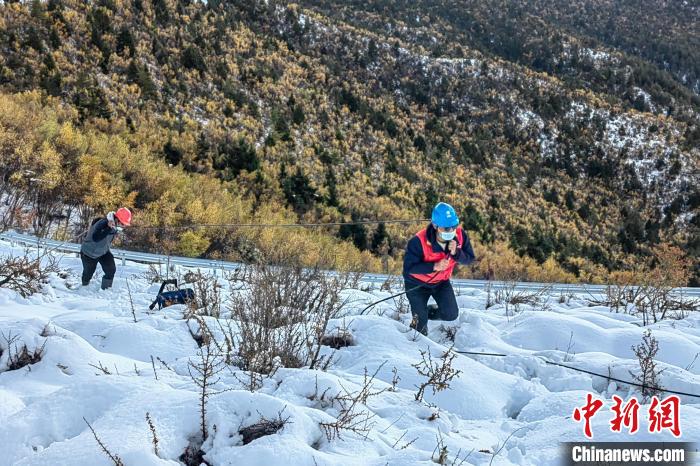 圖為搶修人員在西藏洛扎縣對大雪導(dǎo)致?lián)p壞的線路進(jìn)行搶修。多吉朗杰 攝