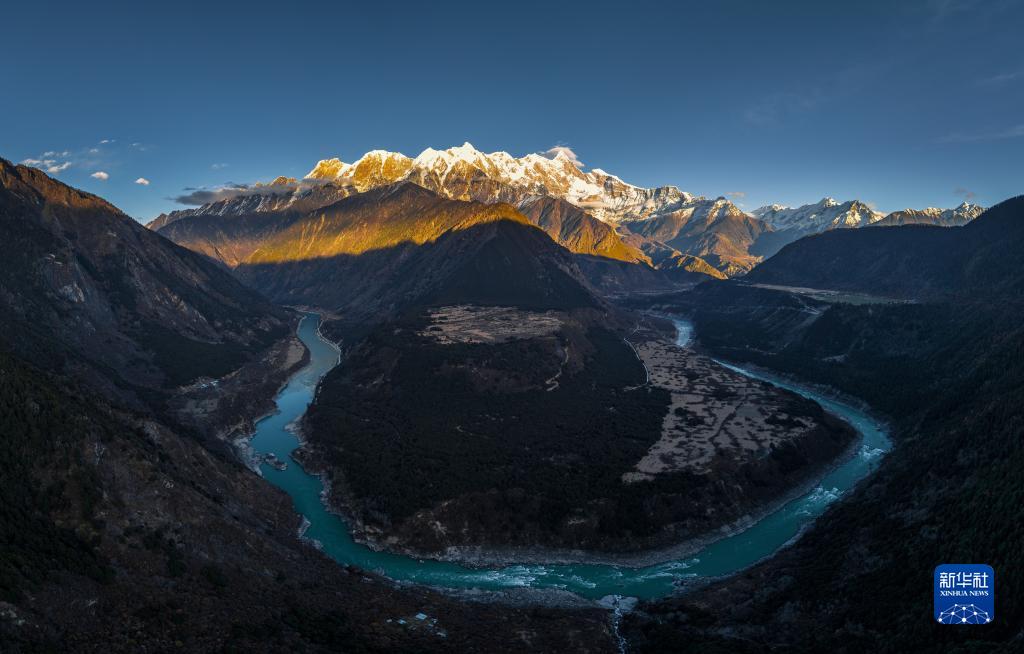 流淌在南迦巴瓦峰腳下的雅魯藏布江(11月28日攝,無人機合成照片)。新華社發(fā)(董志雄 攝)