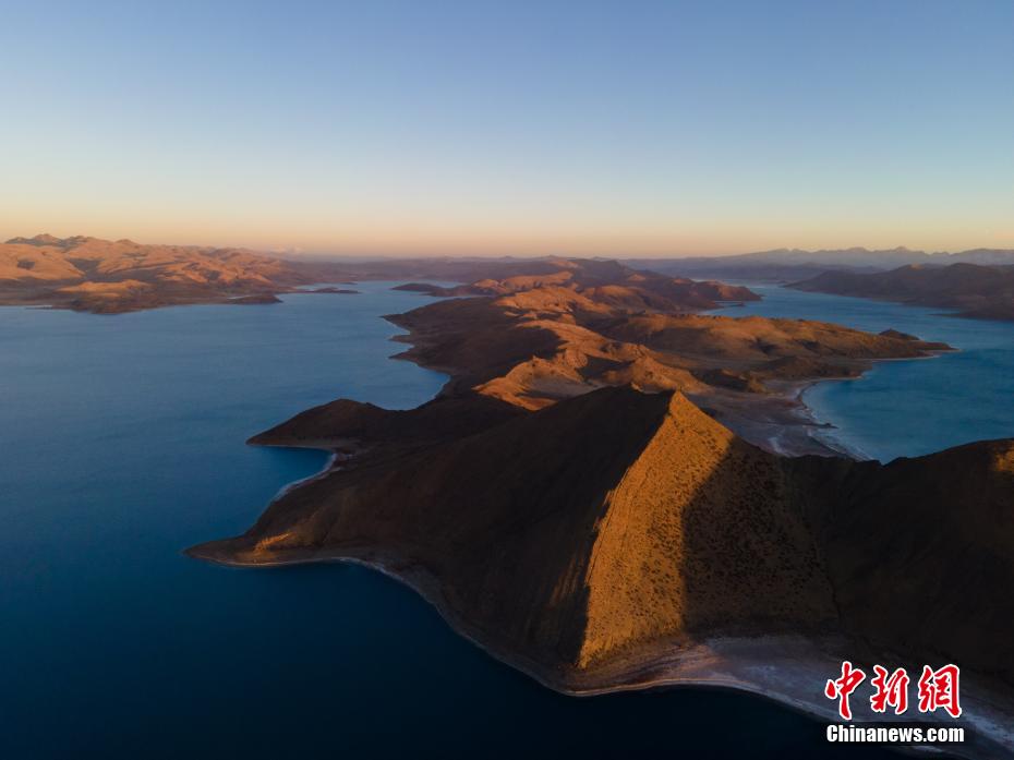 近日,西藏自治區(qū)山南市羊卓雍錯(cuò)(簡稱羊湖),冬日由于沒有云層遮擋,湖水更顯深藍(lán)、孔雀藍(lán)。航拍視角下,湖水像巨大的寶石鑲嵌于高原大地,風(fēng)光壯麗。羊卓雍錯(cuò)藏語意為“碧玉湖”,湖面海拔4441米,與納木錯(cuò)、瑪旁雍錯(cuò)并稱西藏三大“圣湖”。圖為日落后的羊卓雍錯(cuò)風(fēng)光。 江飛波 攝