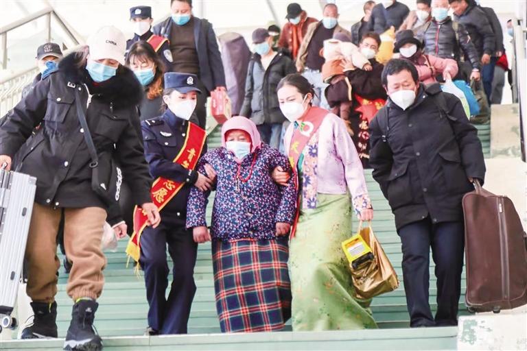 為做好春運工作,拉薩火車站團委“天路格?;ㄇ嗄曛驹刚叻?wù)隊”正式啟動“熱心服務(wù)春運路 愛心志愿暖冬行”行動。 1月7日起至2月中旬,旅客可以在拉薩火車站進出站口、候車大廳等場所看到一抹青春“志愿藍”。山南火車站、林芝火車站也可以看到穿戴“天路格?;ㄖ驹刚摺本R帶的鐵路工作者。本次暖冬行動為期40天,每天共計有20余名志愿者參與活動,來自“天路格桑花青年志愿者服務(wù)隊”的鐵路青年志愿者將和地方志愿者一起為進藏、出藏旅客提供引導(dǎo)咨詢、愛心幫扶等服務(wù),用最溫暖、最燦爛的笑容、最便捷暖心的服務(wù)舉措保障每位旅客便捷出行。