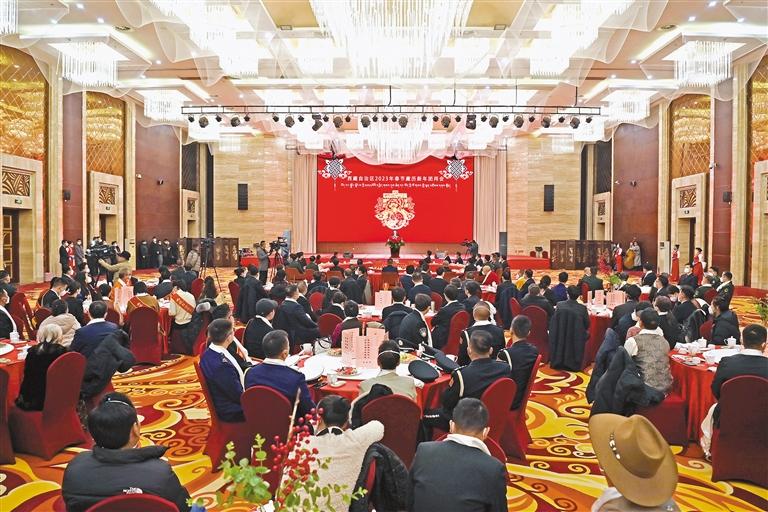 1月17日下午,西藏自治區(qū)2023年春節(jié)、藏歷新年團拜會在拉薩舉行,自治區(qū)黨政軍領導與各族各界人士歡聚一堂。 旦增西旦 攝