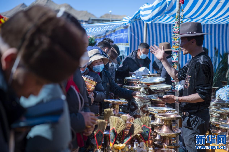 圖為年貨市場(chǎng)上的切瑪盒(1月20日攝)。 新華網(wǎng) 旦增努布 攝